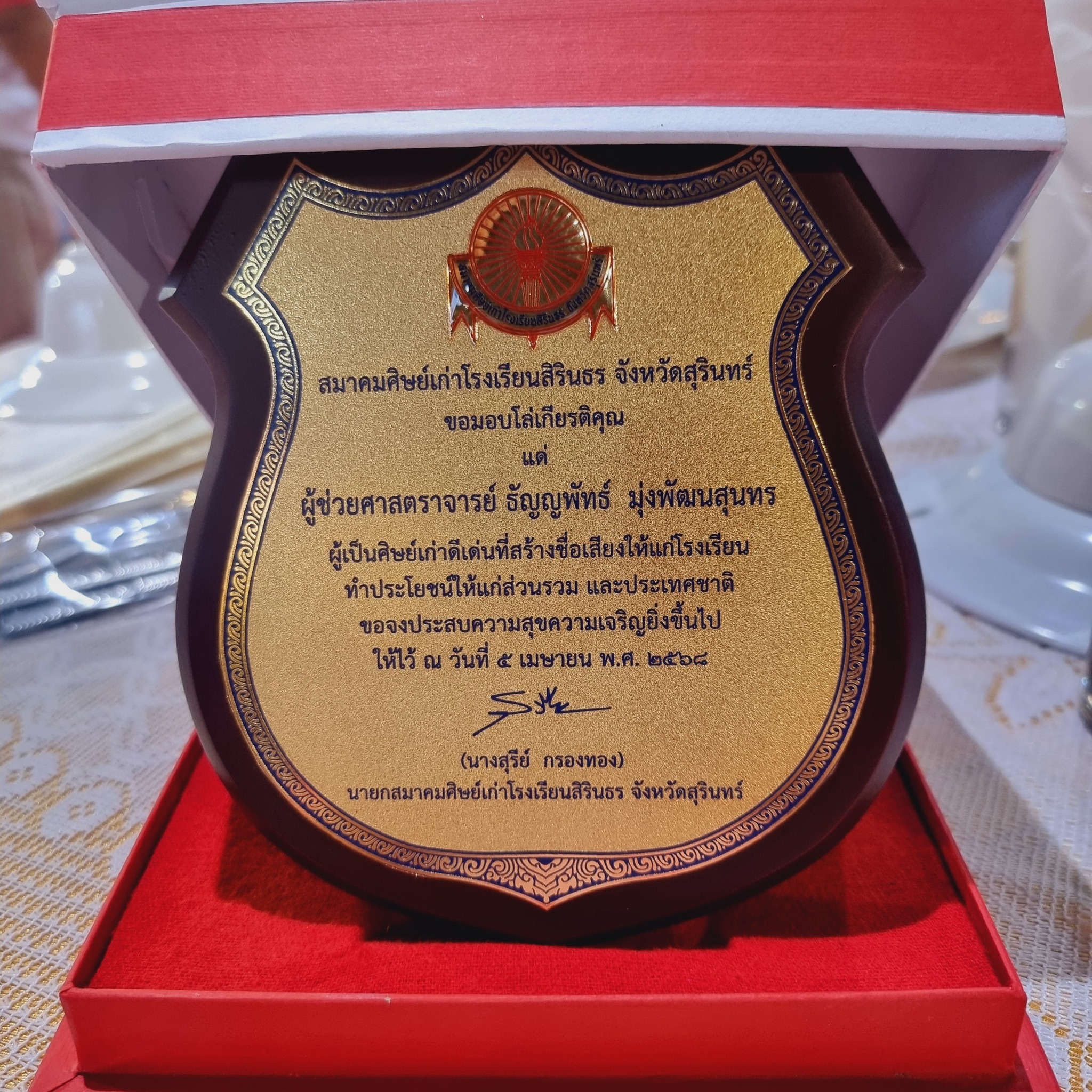 | 3 | 5 เม.ย. 2568 | รางวัลที่ได้รับ คณะ | ศิษย์เก่าดีเด่น ประจำปี 2568 สมาคมศิษย์เก่าโรงเรียนสิรินธร จังหวัดสุรินทร์ |