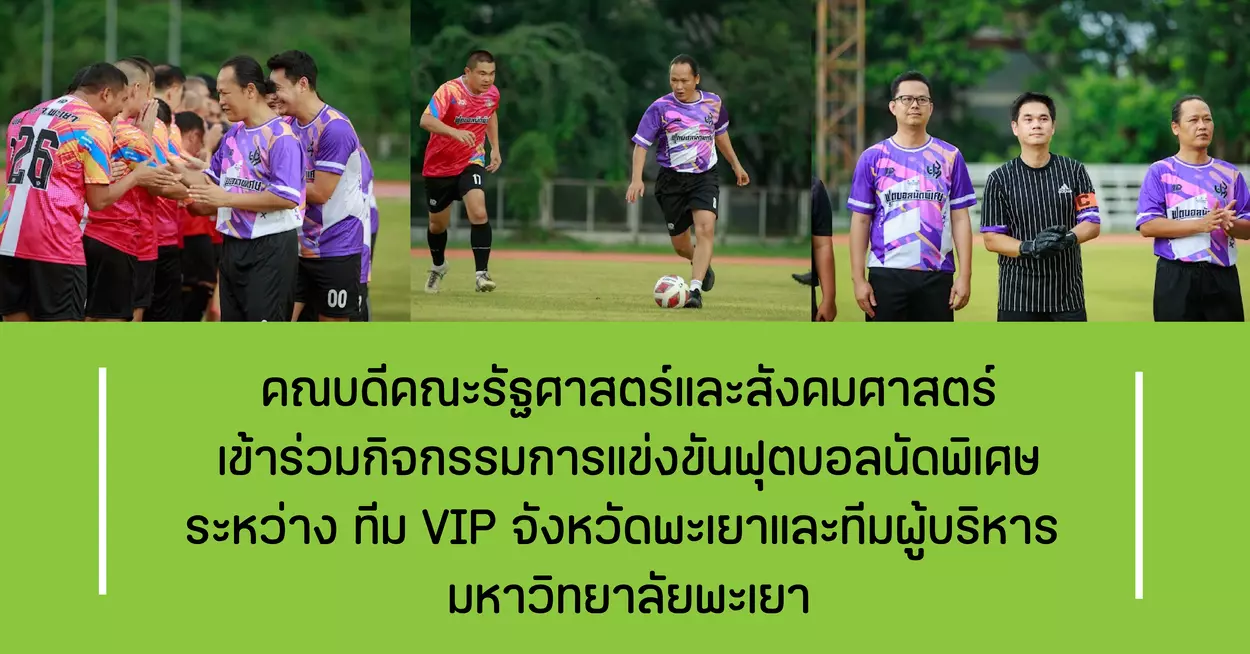 คณบดีคณะรัฐศาสตร์และสังคมศาสตร์เข้าร่วมกิจกรรมการแข่งขันฟุตบอลนัดพิเศษระหว่างทีม VIP จังหวัดพะเยาและทีมผู้บริหาร มหาวิทยาลัยพะเยา