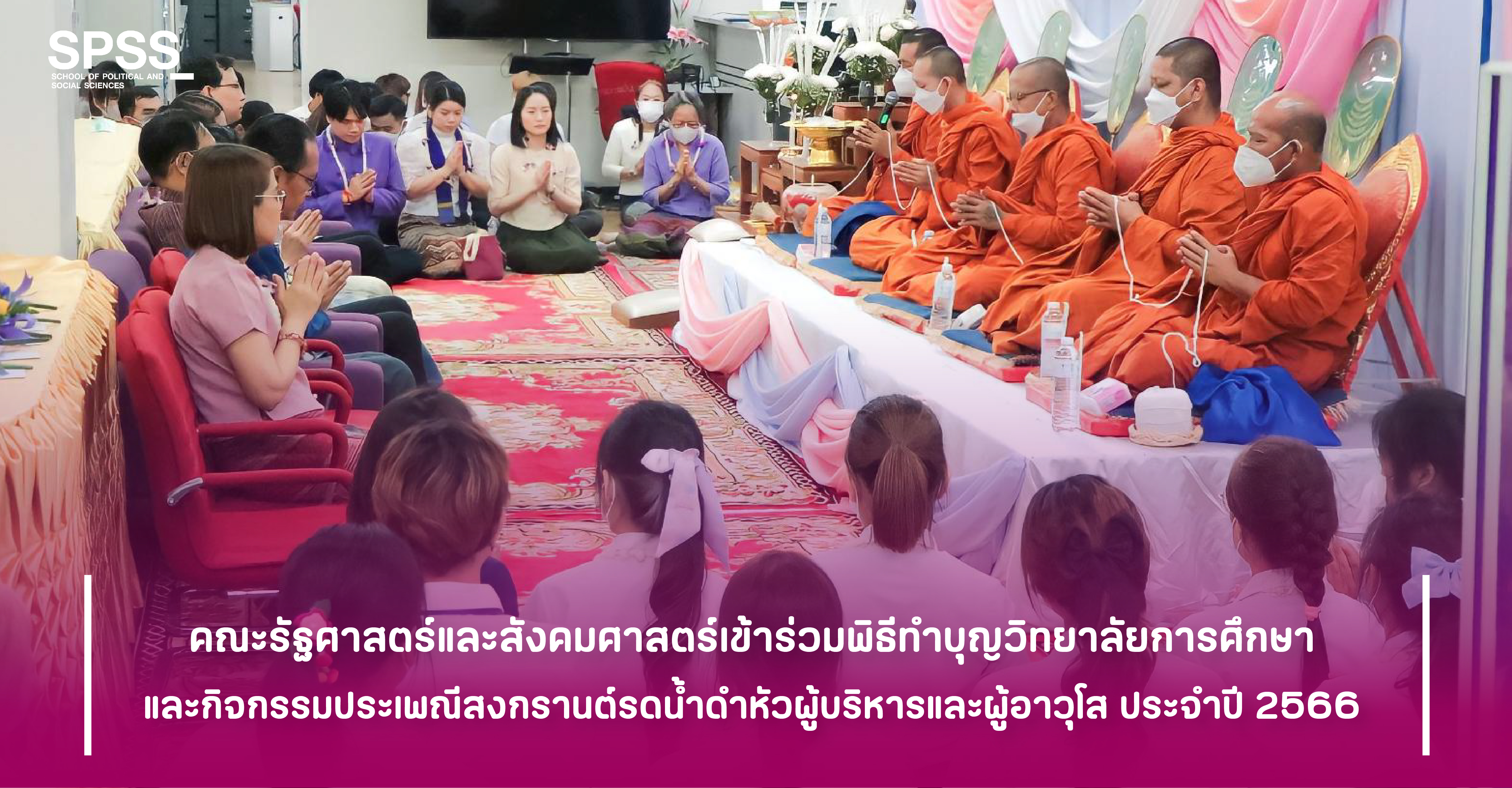 คณะรัฐศาสตร์และสังคมศาสตร์เข้าร่วมพิธีทำบุญวิทยาลัยการศึกษาและกิจกรรมประเพณีสงกรานต์รดน้ำดำหัวผู้บริหารและผู้อาวุโส ประจำปี 2566