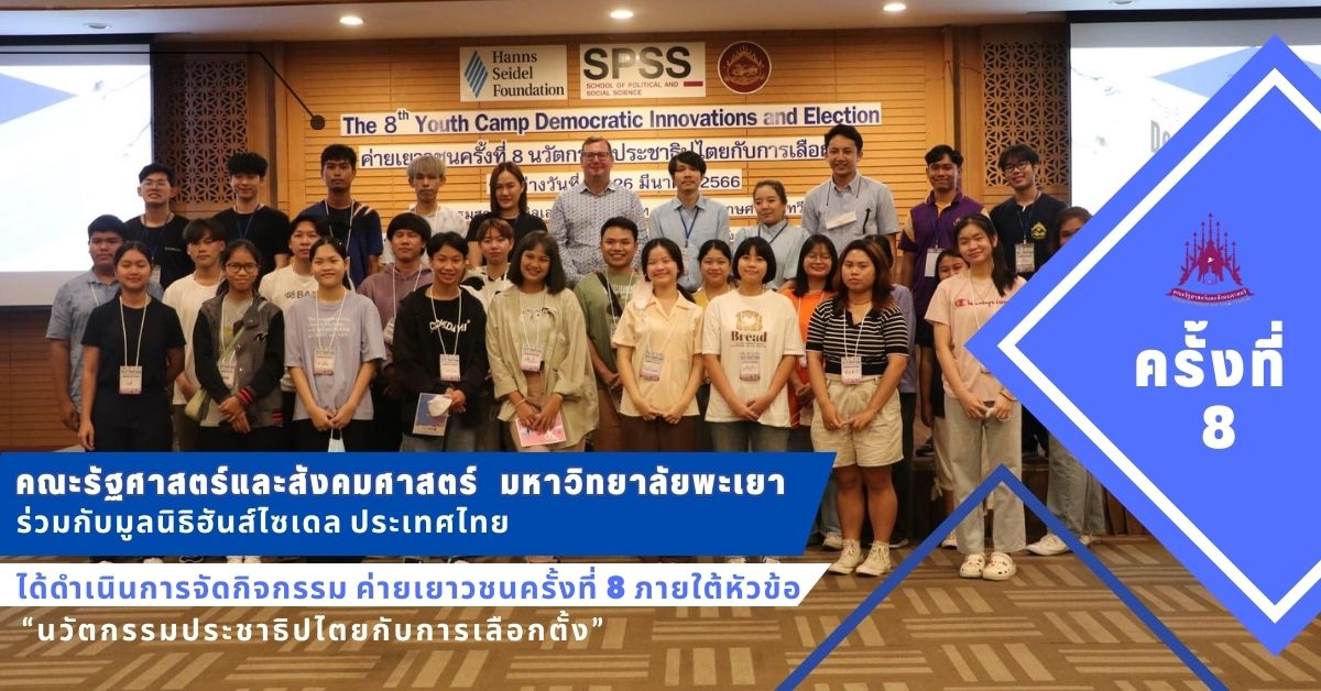 คณะรัฐศาสตร์และสังคมศาสตร์ มหาวิทยาลัยพะเยา ร่วมกับมูลนิธิฮันส์ไซเดล ประเทศไทย ได้ดำเนินการจัดกิจกรรมค่ายเยาวชน ครั้งที่ 8 ภายใต้หัวข้อ “นวัตกรรมประชาธิปไตยกับการเลือกตั้ง”