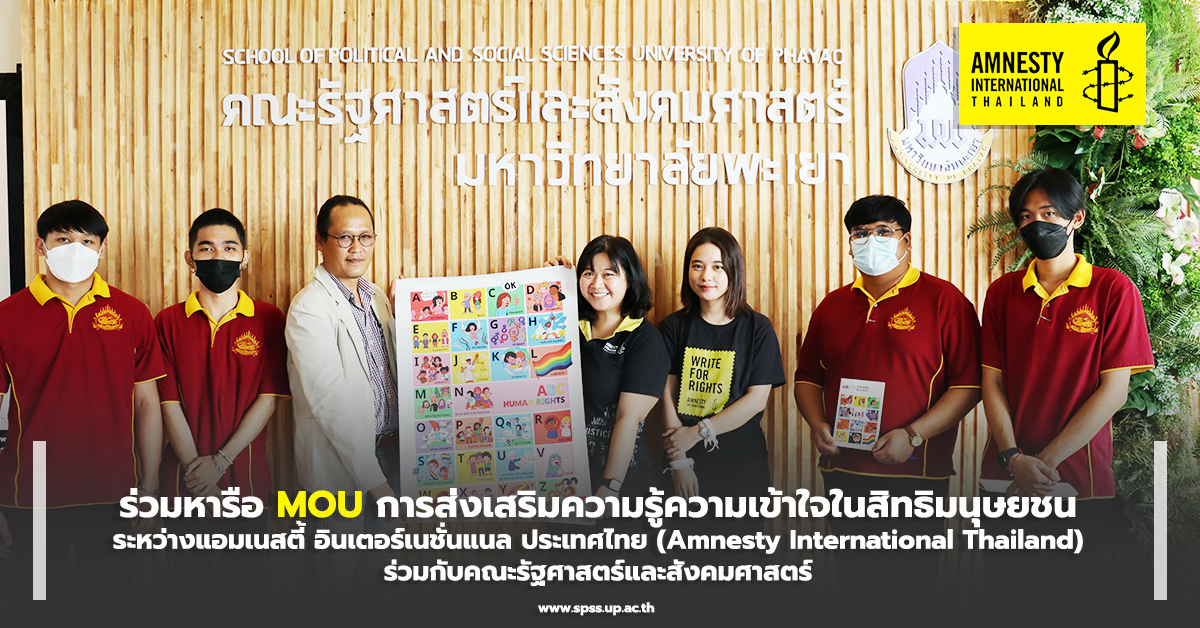 ร่วมหารือความร่วมมือ MOU การส่งเสริมความรู้ความเข้าใจในสิทธิมนุษยชน ระหว่างแอมเนสตี้ อินเตอร์เนชั่นแนล ประเทศไทย คณะรัฐศาสตร์และสังคมศาสตร์