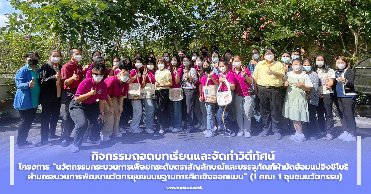 กิจกรรมถอดบทเรียนและจัดทำวิดีทัศน์ นวัตกรรมกระบวนการเพื่อยกระดับตราสัญลักษณ์และบรรจุภัณฑ์ผ้ามัดย้อมแม่อิงชิโบริ (1 คณะ 1 ชุมชนนวัตกรรม) คณะรัฐศาสตร์และสังคมศาสตร์