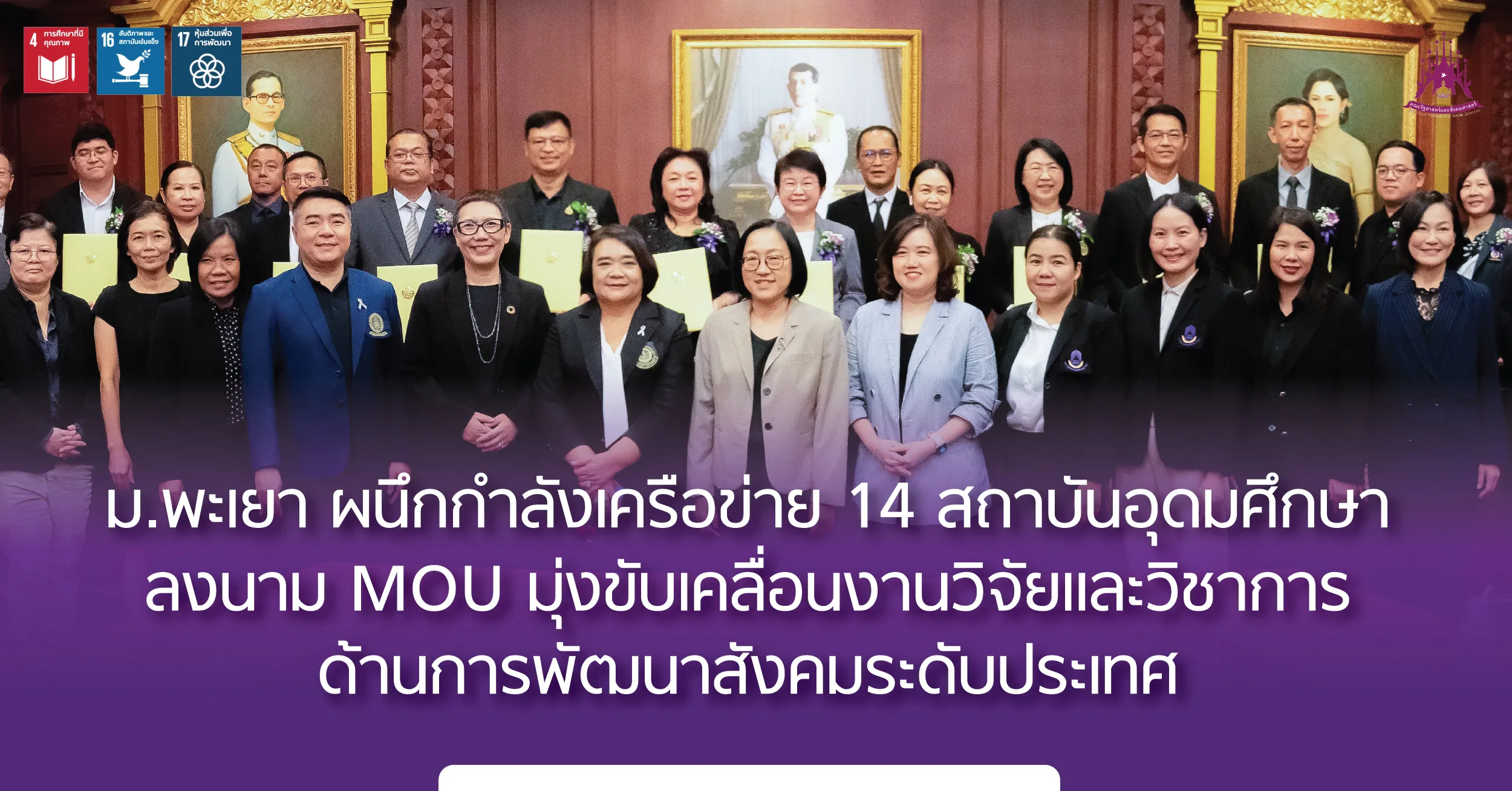 ม.พะเยา ผนึกกำลังเครือข่าย 14 สถาบันอุดมศึกษา ลงนาม MOU มุ่งขับเคลื่อนงานวิจัยและวิชาการด้านการพัฒนาสังคมระดับประเทศ