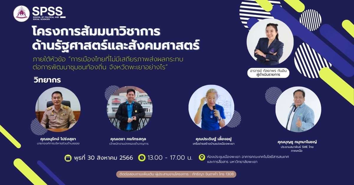 คณะรัฐศาสตร์และสังคมศาสตร์ จัดโครงการสัมมนาวิชาการด้านรัฐศาสตร์และสังคมศาสตร์ ภายใต้หัวข้อการเมืองไทยที่ไม่มีเสถียรภาส่งผลกระทบต่อการพัฒนาชุมชนท้องถิ่น