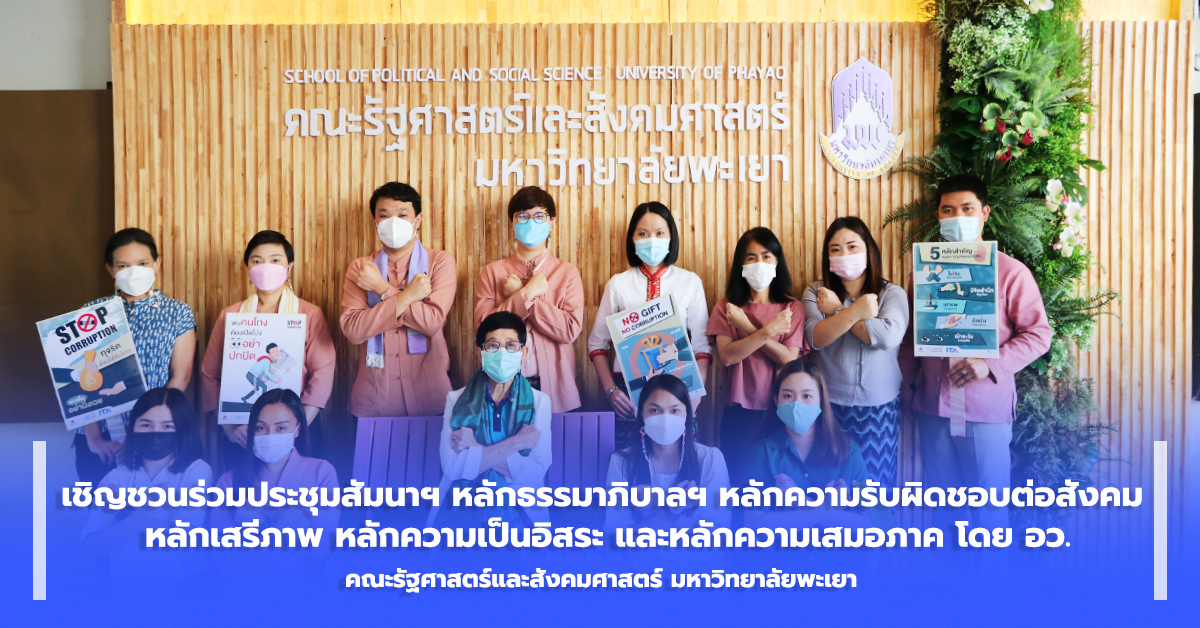 คณะรัฐศาสตร์และสังคมศาสตร์ มหาวิทยาลัยพะเยา เชิญชวนบุคลากร ร่วมประชุมสัมนาฯ การปฏิบัติตามหลักธรรมาภิบาลในสถาบันอุดมศึกษา หลักความรับผิดชอบต่อสังคม หลักเสรีภาพ หลักความเป็นอิสระ และหลักความเสมอภาค โดย อว.